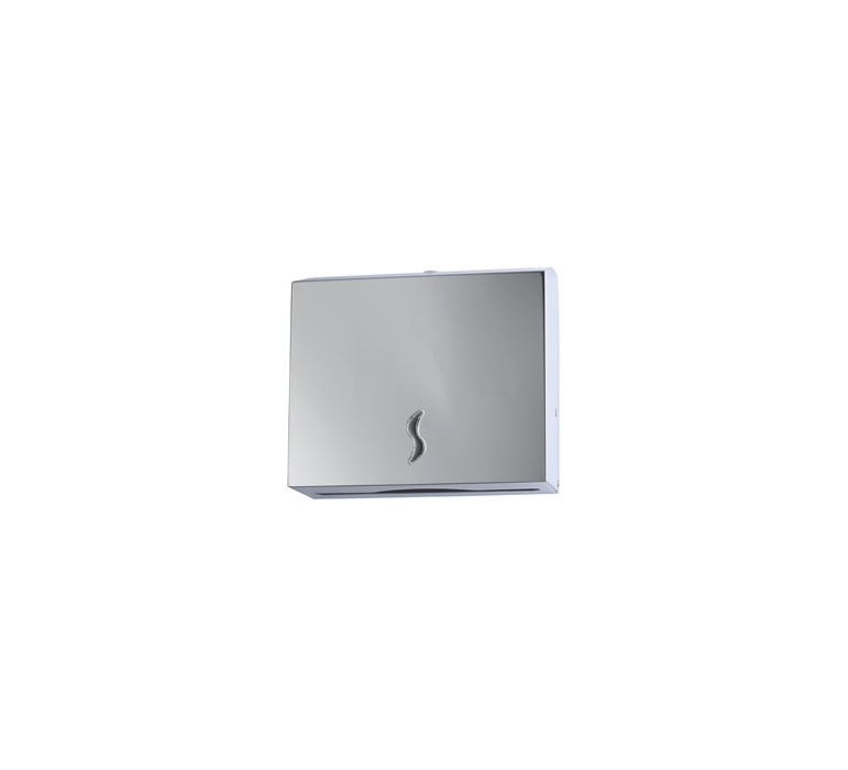 DISPENSER IN ACCIAIO INOX BRILLANTE AISI 430. ADATTO PER ASCIUGAMANI PIEGATI A ''C'' O A ''Z''. VITERIA INOX INCLUSA. DIMENSIONI: L28 X P10,2 X H26,5CM CAPACITA' 200 FOGLI