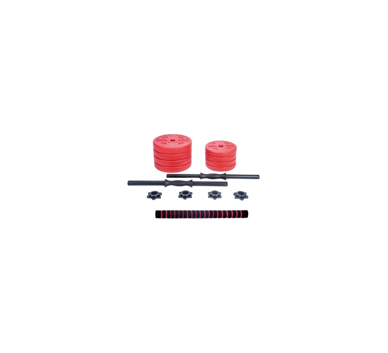 IL SET SI COMPONE DI: 4 DISCHI DA 1.25 KGS CAD. 4 DISCHI DA 2.5 KGS CAD. 2 ASTE MANUBRIO DA 47 CM, PESO 0,8 KG CAD. 1 BARRA DI CONNESSIONE PER TRASFORMARE LE ASTE MANUBRIO IN ASTA BILANCIERE (LUNGHEZZA ASTA BILANCIERE 119.5 CM, PESO 2,2 KG). 4 FERMI A VIT