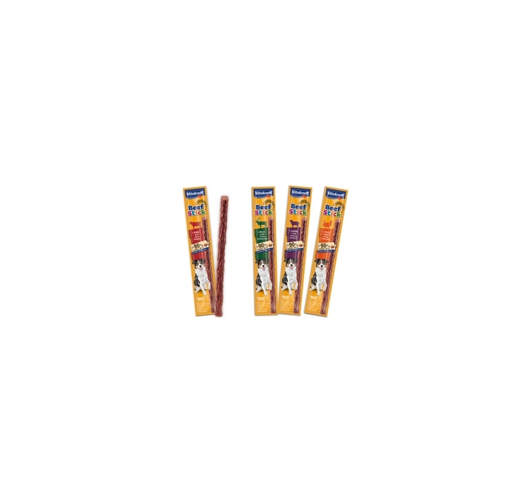 VITAKRAFT BEEF STICKR PIACE A TUTTI I CANI! IL POPOLARE STICK DI CARNE CONVINCE I VOSTRI AMICI A QUATTRO ZAMPE, SIA GRANDI CHE PICCOLI, GRAZIE AL GUSTO UNICO E APPETIBILE, IL PROFUMO DELIZIOSO E IL TENORE DI CARNE MOLTO ELEVATO. IDEALE PER LE COCCOLE, COME PREMIO O COME PICCOLO SPUNTINO TRA UN PASTO E L’ALTRO! MOLTO PRATICO: GRAZIE ALLA CONFEZIONE SALVA FRESCHEZZA CON APERTURA A STRAPPO IL BEEF STICKR ORIGINAL E' IDEALE ANCHE PER FUORI CASA. GUSTO: SELVAGGINA. F.TO 12GR.