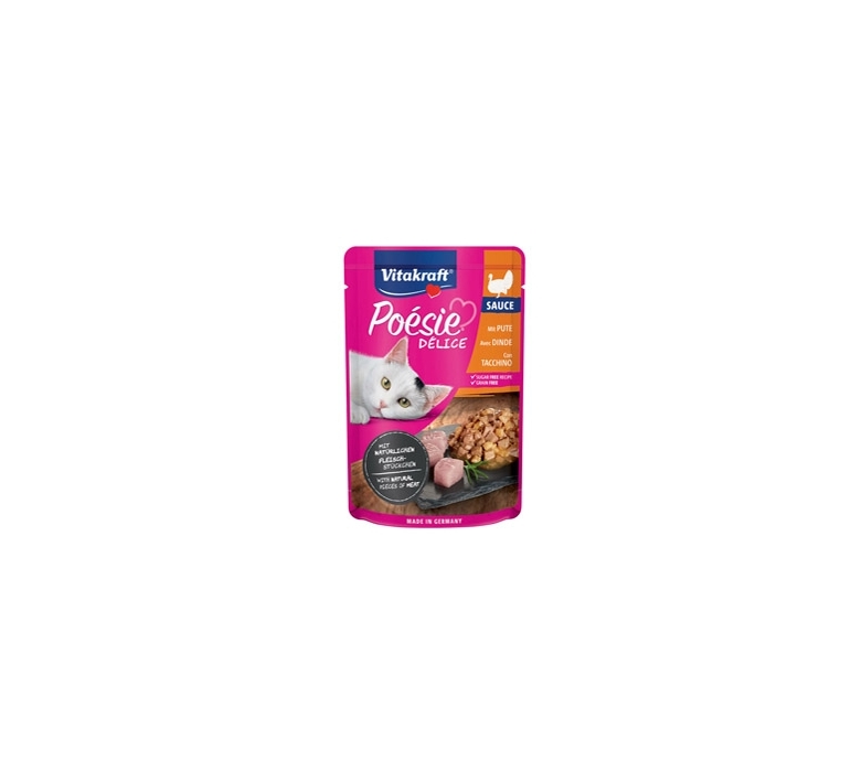 DELIZIOSI BOCCONCINI DAL GUSTO UNICO CON TENERO FILETTO DI TACCHINO IN ABBONDANTE SALSA DELICATA UN'AUTENTICA PRELIBATEZZA PER I GATTI. POE'SIER DE'LI SAUCE CON PEZZETTI DI CARNE NATURALI, AD ALTO VALORE NUTRIZIONALE. I MIGLIORI INGREDIENTI ASSICURANO LA QUALITA' ELEVATA E SONO PERFETTAMENTE CALIBRATI PER LE ESIGENZE NUTRIZIONALI DEL GATTO. GUSTO: TACCHINO. F.TO 85GR.