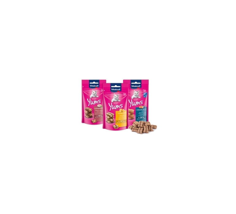 RICCHISSIMI DI CARNE CON APPETITOSO PATE' DI FEGATO VENGONO PRODOTTI ATTRAVERSO UN PROCEDIMENTO ESCLUSIVO, CON I MIGLIORI INGREDIENTI E LA RICETTA NON CONTIENE ZUCCHERO. OGNI SINGOLO BOCCONCINO HA UN DELIZIOSO RIPIENO ED E' COTTO AL FORNO DELICATAMENTE. I CAT YUMSR SONO IRRESISTIBILMENTE GUSTOSI E MORBIDI. F.TO 40GR.