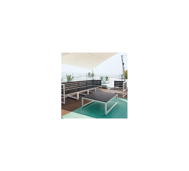 POLTRONA ANGOLARE DESTRO DEL SALOTTO COMPONIBILE QUICK. MATERIALE BASE IN ALLUMINIO E TOP IN LEGNO. DIMENSIONI: 66X70X70CM